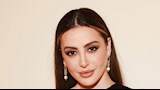 ومن الناحية الجمالية اعتمدت مكياجاً قوياً وجذاباً يركز على رسمت العيون السموكي وأحمر شفاه بلون بني لامع، وتركت شعرها منسدلاً على كتفيها بنعومة.