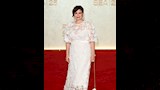 وظهرت إلهام شاهين، بفستان بطول متوسط، مصنوعاً بالكامل من الدانتيل الأبيض الفاخر بنقشة الزهور، ما منحها طابعاً أنثوياً ناعماً.