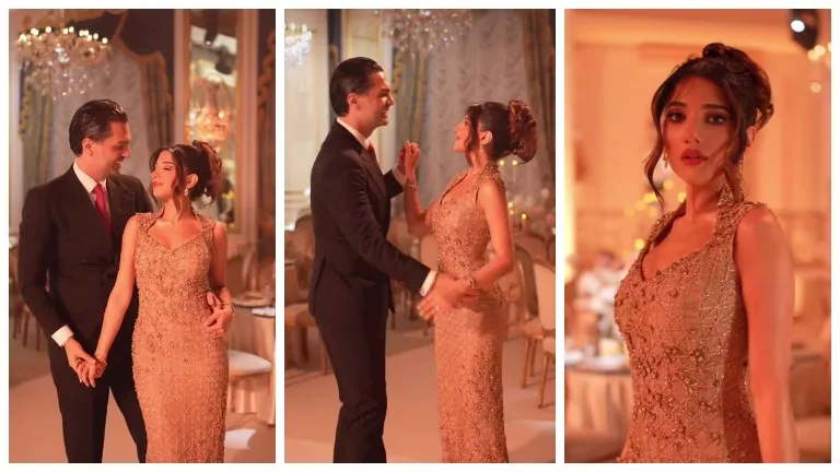 نارين بيوتي تخطف الأنظار رفقة زوجها في حفل زفاف شقيقتها