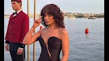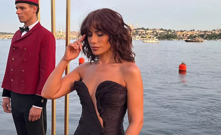 هذا الفستان جاء بتصميم انسيابي يبرز قوامها الرشيق، وهو من توقيع مصممة الأزياء مرام حليم، بتنسيق من الاستايلست محمد أشرف.