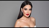 الفستان جاء بقصة حورية البحر مع تطريزات دقيقة وفصوص لامعة، وياقة على شكل قلب وأحزمة رفيعة مرصعة، أبرزت قوامها بأسلوب راقٍ.