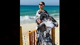اختارت حنان بوركيني عصري بتصميم فضفاض وأكمام واسعة، جاء بطبعات هندسية تنسجم فيها درجات الأبيض والأسود والرمادي، مع لمسات لونية خفيفة تضيف بعدًا بصريًا أنيقًا دون صخب، في ترجمة مثالية لمفهوم "البساطة الراقية".