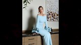 تألقت ملك بفستان طويل بلون أزرق فاتح "بيبي بلو" بدرجة هادئة وجذابة للغاية.