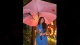 زينت الإطلالة بشمسية وردية اللون، أضافت طابعًا أنيقًا وحيويًا.