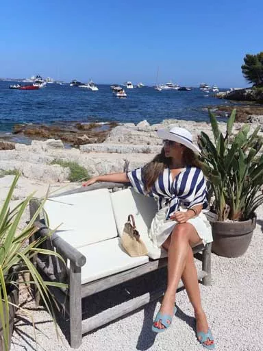 اعتمدت مكياجا ناعما بألوان النيود، تناسب أجواء النهار والشاطئ، وأبرز جمالها الطبيعين أما عن تسريحة الشعر، فقد تركته منسدلا تحت قبعة كبيرة، ما منحها مظهرًا مريحًا وعفويًا.