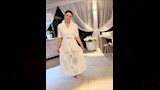 وارتدت إلهام فستان أبيض مكون من قطعتين بلوزة وتنورة مصنوع من قماش الدانتيل