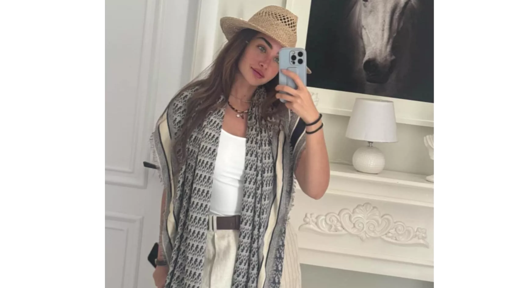 وتألقت هنا بتوب باللون الأبيض ونسقت معه شورت باللون البيج وشال باللون الرصاصي.