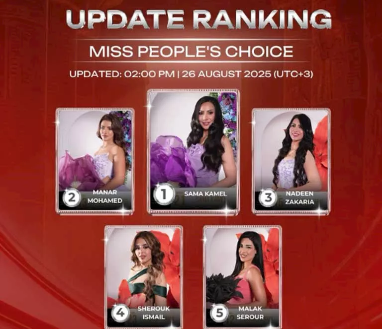 تقترب منافسات ملكة جمال مصر 2025 من مرحلتها النهائية، مع اقتراب موعد إغلاق التصويت، والمقرر في تمام الساعة السادسة مساء يوم 6 سبتمبر.