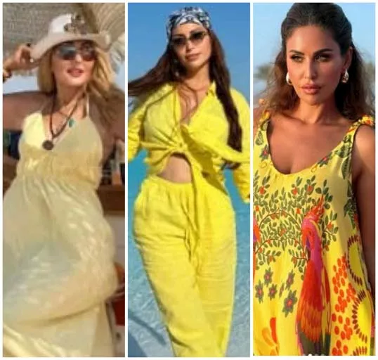 تألقت العديد من النجمات بفساتين صيفية جذابة وأنيقة باللون الأصفر، وتنوعت الإطلالات بين الفساتين الطويلة والقصيرة والكروب توب.