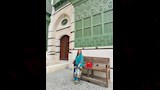 ونسقت نسرين مع إطلالتها حذاء باللون الأزرق وحقيبة يد باللون الأحمر.