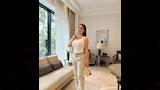 ظهرت نسرين في إحدى الإطلالات الكاجوال وهي ترتدي طقما أنيقا مكونا من توب أبيض وبنطلون باللون البيج، ونسقت معهما جاكيت فاخر من دار Louis Vuitton يبلغ سعره نحو 3070 دولارا، أي ما يعادل 49,889 جنيها مصريا.