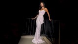 وارتدت أية فستان طويل جريء باللون الوردي بقصة "الكب" مصنوع من قماش الحرير، من إستايل "إسلام متولي".