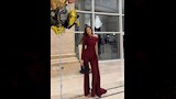 ونسقت مع إطلالتها حذاء باللون الفضي.