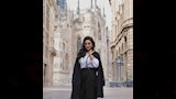 فاللونين الأسود والأبيض يرمزان إلى القوة والأناقة، بينما التصميم البسيط يعكس شخصية عملية واثقة، لتظهر بمظهر متوازن يناسب الحياة اليومية والظهور الإعلامي معًا.