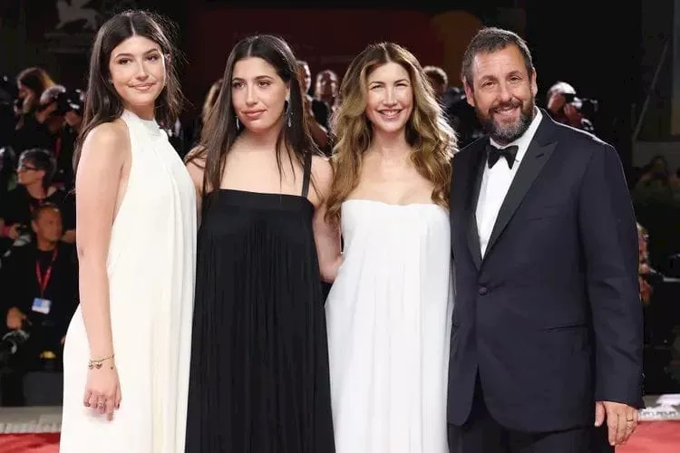ظهرت العائلة بالكامل في لحظة امتزجت فيها الحميمية بالأناقة ساندلر اختار توكسيدو كلاسيكي، في حين وصلدته زوجته وابنتاه بإطلالات متناسقة رسمت لوحة ضمّت الحب والعائلة على السجادة.