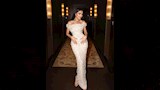 ظهرت مي مرتدية فستانا طويلا باللون الأبيض بتصميم حورية البحر، ومزينا بتطريزات لامعة.