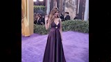 ارتدت نانسي فستانا طويلا باللون البرجندي، تميز بأنه مكشوفا عند منطقة الصدر، وبقصة انسيابية واسعة على الجسم.