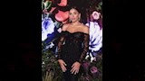 تألقت الفنانة هنا الزاهد بفستان طويل متعدد الألوان، تميز بأنه بقصة الكب ومزينا بتطريزات لامعة بالكامل، واعتمدت مكياجا ناعما بدرجات ألوان النيود،