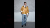 ارتدى الممثل الكندي آدم ديماركو جاكيت باللون البني ونسق أسفله قميص باللون البيبي بلو وبنطلون جينز باللون الجينز الفاتح.