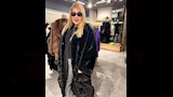 تألقت نادية بالطو طويل بصيحة الفرو باللون الأسود، ونسقت أسفله توب بنفس اللون وبنطلون رصاصي.