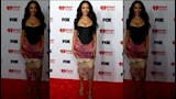 ظهرت المغنية الأمريكية نيكول شيرزينجر بفستان جلد باللون الأسود بقصة الكب ومزود بأكمام بنفس اللون، ومن الناحية الجمالية، اعتمدت مكياجا ترابيا، وتركت شعرها الويفي منسدلا على كتفيها.