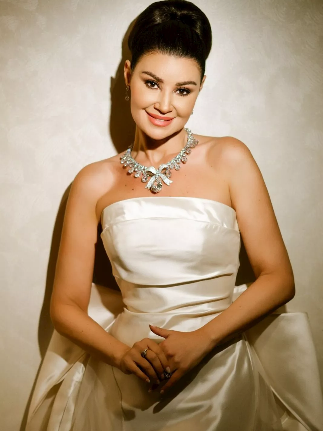 زينت أروى إطلالتها بمجوهرات ماسية مكونة من كوليه وحلق، بالإضافة إل خاتم.