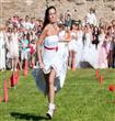 تنافست العديد من العرائس المرتديات فساتين العرس بمسابقة الجري السنوية في حصن مدينة نارفا الإستونية، السبت الماضي.