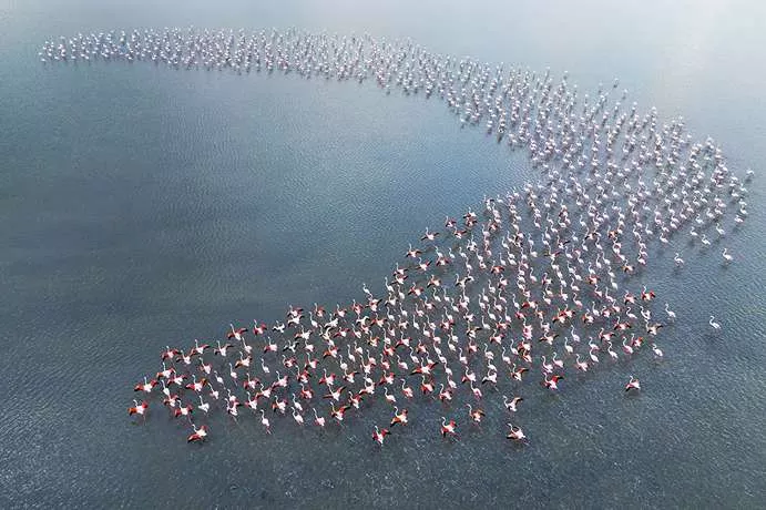 وبحسب شبكة CNN، التقط المصور التركي حنيفي كوتش صورا مذهلة في بحيرة "أكياتان"، من خلال استخدام طائرة "درون"، إذ وثق انتشار طيور الفلامنجو عبر الأراضي الرطبة.
