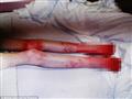 ويظهر في الصورة جسد الشابة الضعيف المغطى ببقع الدم والذي تظهر عليه علامات جروح وندبات.