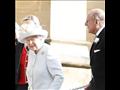 وارتدت الملكة إليزابيت معطف باللون الرمادي الباستيل مع قبعة من اللون نفسه وقفازات بيضاء وحذاء كلاسيكي لامع اسود.