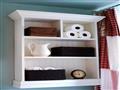 الاستعانة بأرفف مفتوحة مثبتة على الجدار هو الخيار الأفضل والأكثر راحة في تنظيم الأغراض من أدوات الاستحمام والتجميل وأدوات المكياج البسيطة التي تتركينها في الحمام.