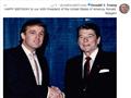 وعلق "ترامب" على الصورة قائلًا: "عيد ميلاد سعيد للرئيس الأربعين للولايات المتحدة رونالد ريجان".