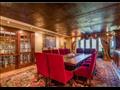 أكثر ما لفت الانتباه في منزل النجمة العالمية أنجلينا جولي هو حجرة السفرة، فهي مميزة جدًا بلونها الأنيق وتصميمها الفاخر، وهي من الطراز الكلاسيكي وصُنعت من الخشب بلونه البني والكراسي باللون النبيتي.