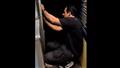 وفي الفيديو، شوهد الممثل وهو جالسًا في وضع غير مستقر بجانب باب قطار متحرك مفتوح.