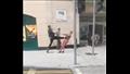 ويرد الرجل بإطلاق ركلتين أخريين على المرأة التي كانت ترتدي البيجامة الوردية.
