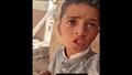 وظهر الطفل والدماء والأتربة تملأ وجهه، وسط صدمة بعد فقدان أسرته.