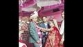 لكن فقد العريس توازنه فجأة مسببا سقوط العروس وأفراد أسرتها بشكل صادم على مسرح حفل الزفاف، وسط صدمة المعازيم.