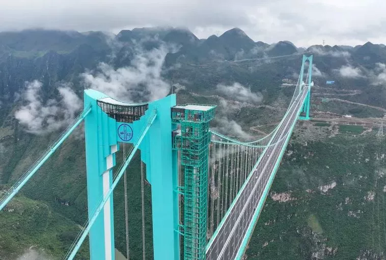 افتتحت الصين خلال الأيام الماضية، جسر "هواجينج" العملاق فوق وادي جويتشو بارتفاع يصل إلى 625 مترا، محطمة الرقم القياسي الذي كان يحمله جسر "دوج" (565 مترا) في المقاطعة نفسها، وفق ما أوردته وسائل إعلام محلية.