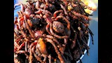 وجبة شوارع شهيرة في كمبوديا، حيث تُقلى العناكب لتصبح مصدرًا للبروتين. رغم غرابتها، يُقدّرها السكان المحليون كوجبة لذيذة.