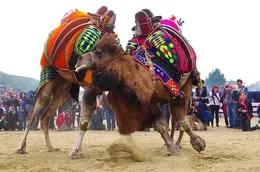 هذا التقليد شائعٌ في منطقة بحر إيجة التركية، ولكنه يُمارس أيضًا في دول آسيوية أخرى يصور جملين يتقاتلان أمام أعين الناس.