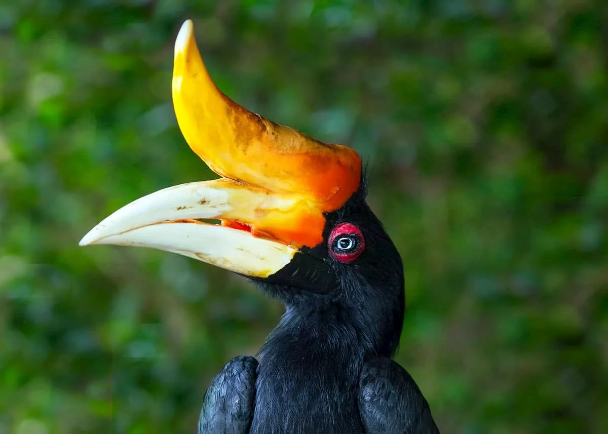 من الطيور الكبيرة والأكثر وضوحًا في آسيا الاستوائية، ويُعرف بقرنه البارز على المنقار.