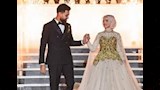 أما خطيبها يوسف فرحات ارتدى بدلة كلاسيكية باللون الأسود ونسق أسفلها قميص باللون الأبيض وربطة عنق وحذاء باللون الأسود.