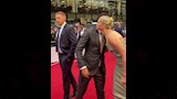 وتألق الثنائي بإطلالات أنيقة ومتميزة؛ حيث ارتدى محمد صلاح بدلة سوداء كلاسيكية، نسقها مع قميص أبيض وربطة عنق باللون البيج.