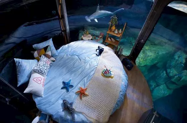 تخيل أن تستلقي على فراشك بينما أسماك القرش تدور حولك، هذا ما يقدمه "أكواريوم باريس" بالتعاون مع موقع "Airbnb"، إذ يتاح لعدد محدود من الفائزين قضاء ليلة كاملة داخل غرفة زجاجية غارقة وسط حوض يضم 35 سمكة قرش.
