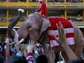 بالصور: أفيال ترتدي زي بابا نويل فى إحدى المدارس