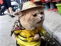 ويظهر القط في صور تداولها ناشطون على مواقع التواصل، يضع قبعة على رأسه ويرتدي ملابس صفراء ونظارة سوداء.