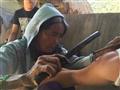 بالصور- يابانية يصل عمرها إلى 100 سنة.. تدق الوشم بـ"الخشب والفحم"