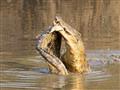 وانتقل التمساح الفائز إلي أكل جثة المنهزم، وهو مشهد فريد لتمساح يمزق جثة آخر، رغم أنه من غير المعروف عن التماسيح أنها تأكل بعضها البعض، لكن التماسيح تأكل اي شيء، حتي نوعها الخاص والنادر، ولذلك تفسح التماسيح الصغير الطرق للتماسيح الاكبر دوماً.