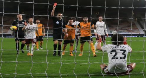 أرسنال يخسر بثنائية من ولفرهامبتون وسط غياب النني وطرد لاعبه وحارسه