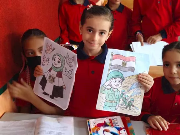 وقام الطلبة بعمل لافتات عن انتصارات أكتوبر المجيد معبرين عن فخورهم بنصر العزة والكرامة، وببطولات سطر فيها رجال القوات المسلحة المصرية والشعب المصري العظيم ملحمة العبور والنصر.